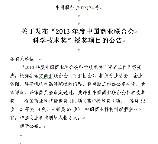 公司《大撓度下鋼筋混凝土板的受拉薄膜效應》項目榮獲2013年度中國商業(yè)聯(lián)合會(huì )科學(xué)技術(shù)獎——全國商業(yè)科技進(jìn)步獎一等獎。